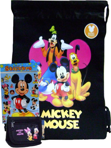 New Mickey and Friends Drawstring Bag Black + Wallet,stickers